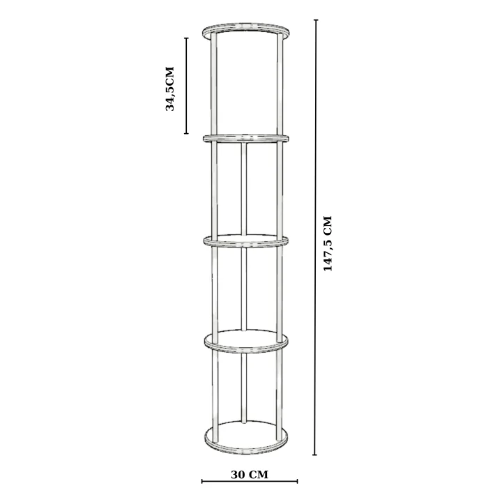 Yükseklik : 147,5 cm Çap : 30 cm Raf Aralıkları : 34,5 cm